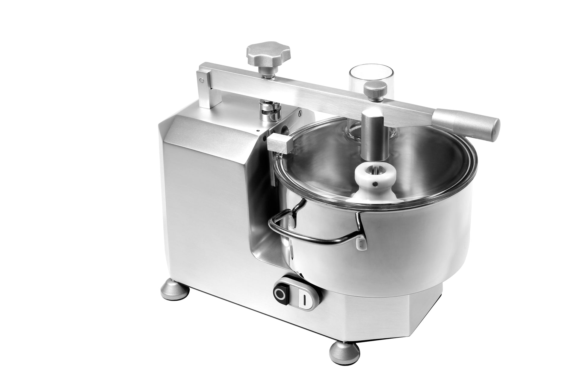 • Robusna struktura od anodiziranog aluminija • Inox posuda • 3 sigurnosna mikroprekidača • Providni polikarbonatni poklopac • Standard: nož sa 2 oštrice od inoxa • Opcionalno: set perforiranih noževa za miješanje