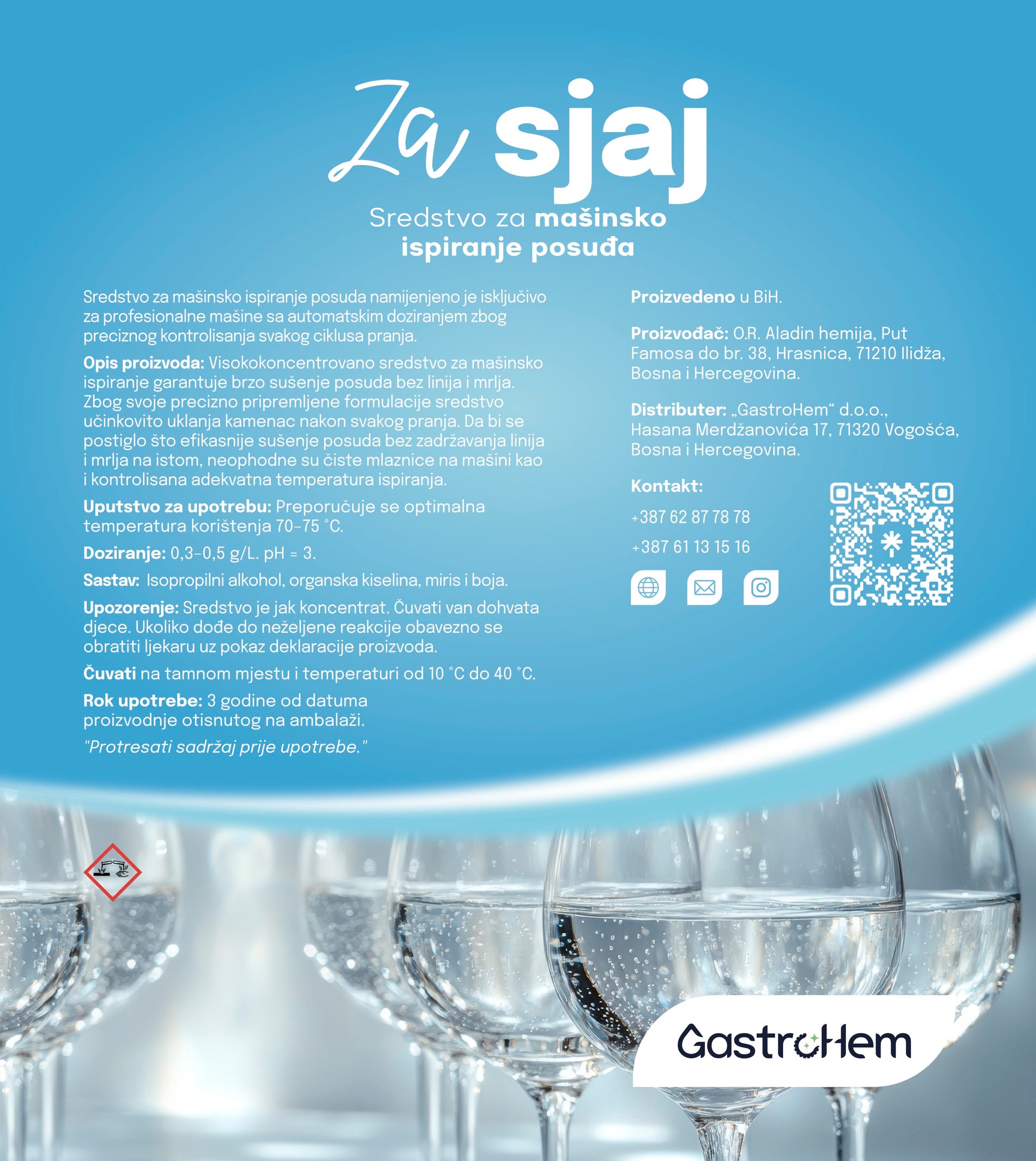 Upozorenje: Sredstvo je jak koncentrat. Čuvati van dohvata djece. Ukoliko dođe do neželjene reakcije obavezno se obratiti ljekaru uz pokaz deklaracije proizvoda.