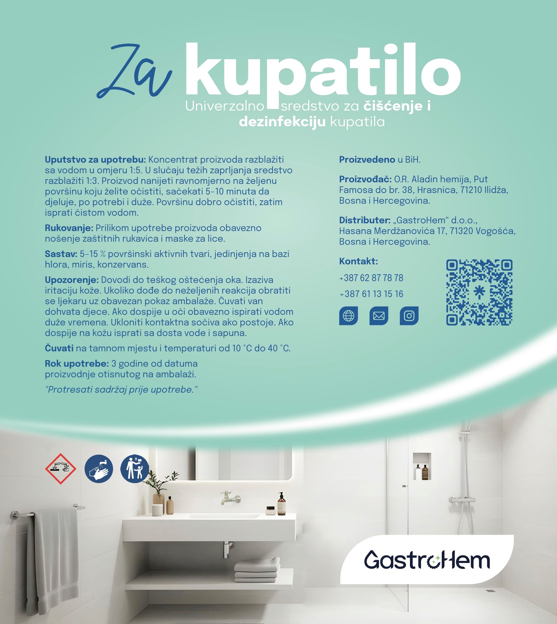 Rukovanje: Prilikom upotrebe proizvoda obavezno nošenje zaštitnih rukavica i maske za lice.