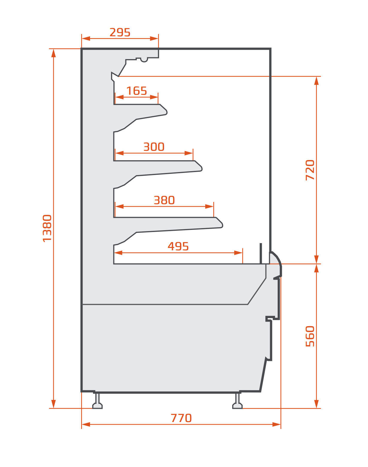 Carina 06 Self Serve je samoposlužna rashladna vitrina (patisserie vitrina) namijenjena izlaganju kolača, torti, slastica i drugih rashlađenih proizvoda u kafićima i slastičarnama. Opremljena je elektronskom regulacijom temperature, LED osvjetljenjem na svakoj polici i staklenim policama za uredno i atraktivno izlaganje proizvoda.
